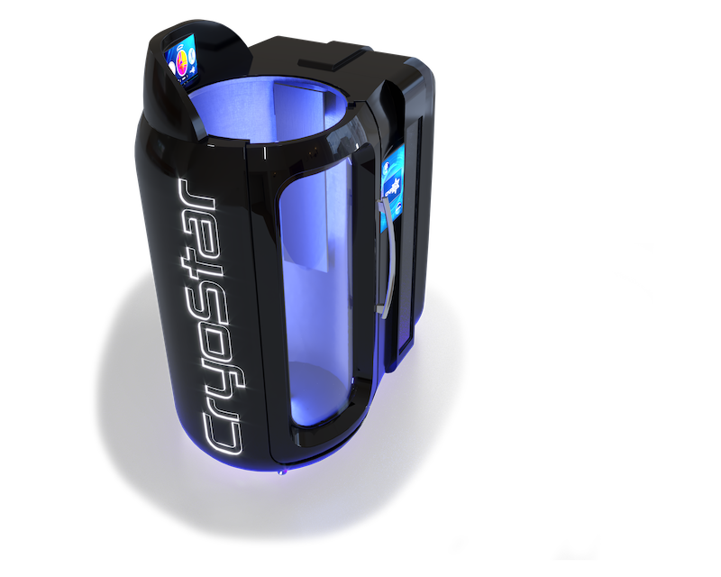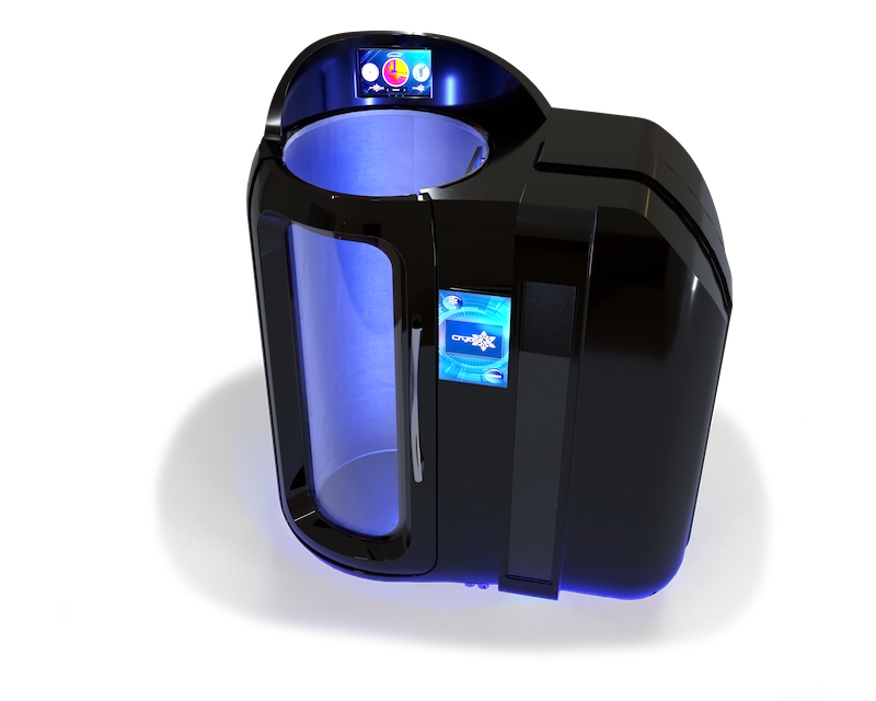 Cryotherapy chamber for extreme cold shock therapy up to -170C/-256F. Thermal imaging camera and oxygen sensor monitor. Automatic lift. Affordable price.